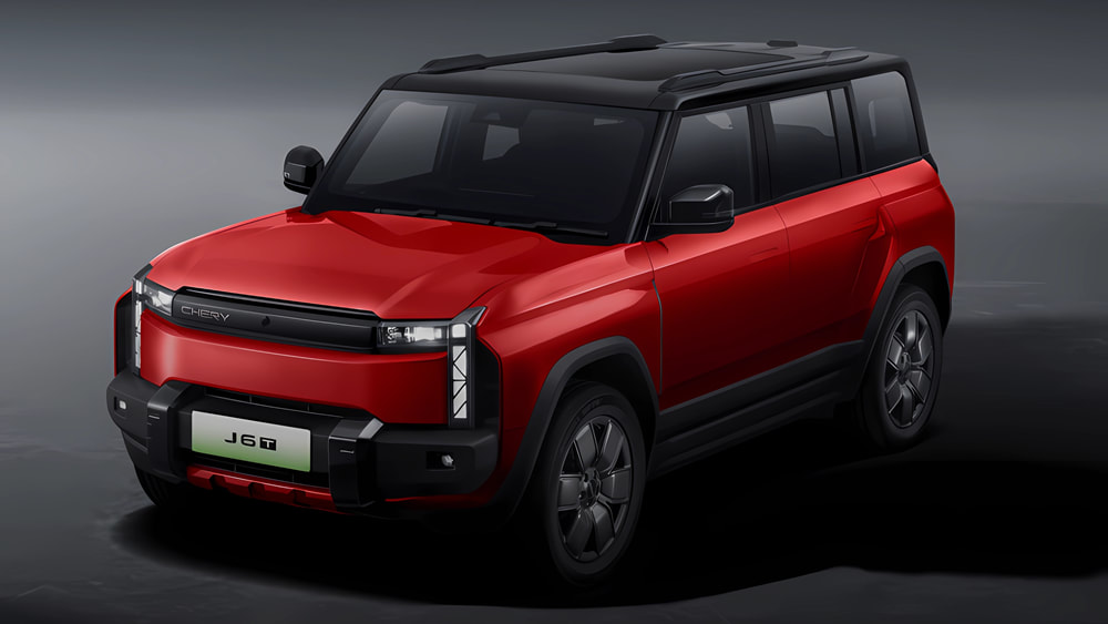 Desain eksterior Chery J6T Indonesia menjadi pembeda paling mencolok dengan versi reguler. Tujuan perbedaan ini untuk menunjang fungsi off-road-nya.