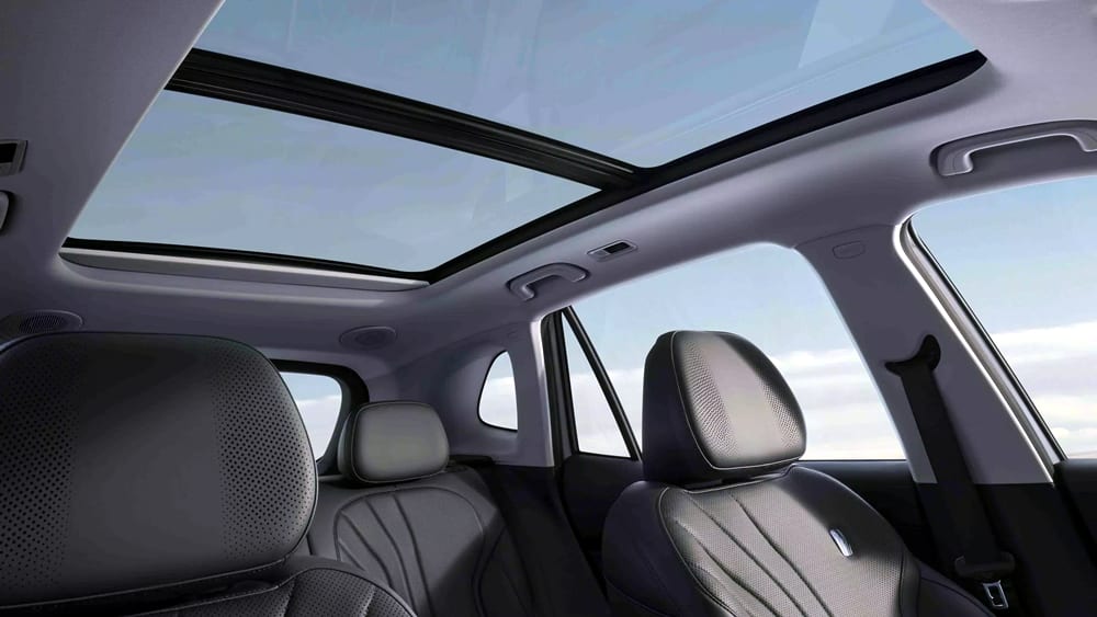 Di sisi samping, velg 19 inci dengan ban 235/50 menghiasi kaki-kaki, dilengkapi fender hitam yang menambah kesan gagah. Spion samping menyematkan kamera blind spot, lalu di atas ada panoramic sunroof besar membentang hingga baris kedua.