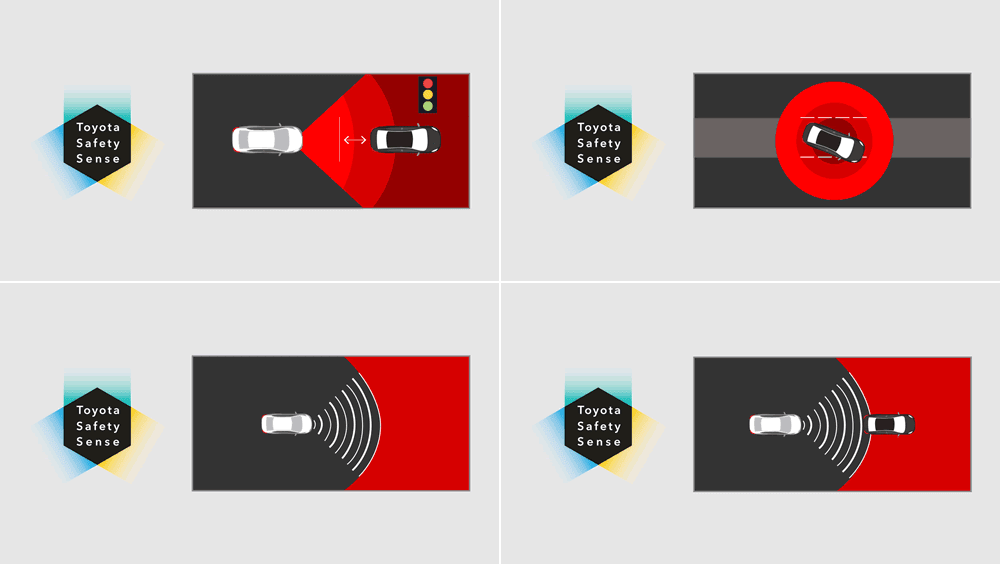 Fitur-fitur TSS meliputi PCS, ACC, LDA, FDA, RCTA, BSM, dan Pedal Misoperation Control.