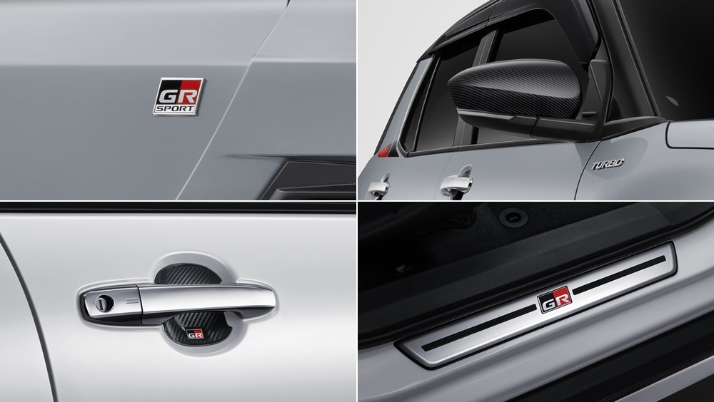 Pengaplikasian Toyota Raize GR Sport body kit mencakup bumper spoiler depan yang agresif, side skirt di bagian samping, serta bumper spoiler belakang.