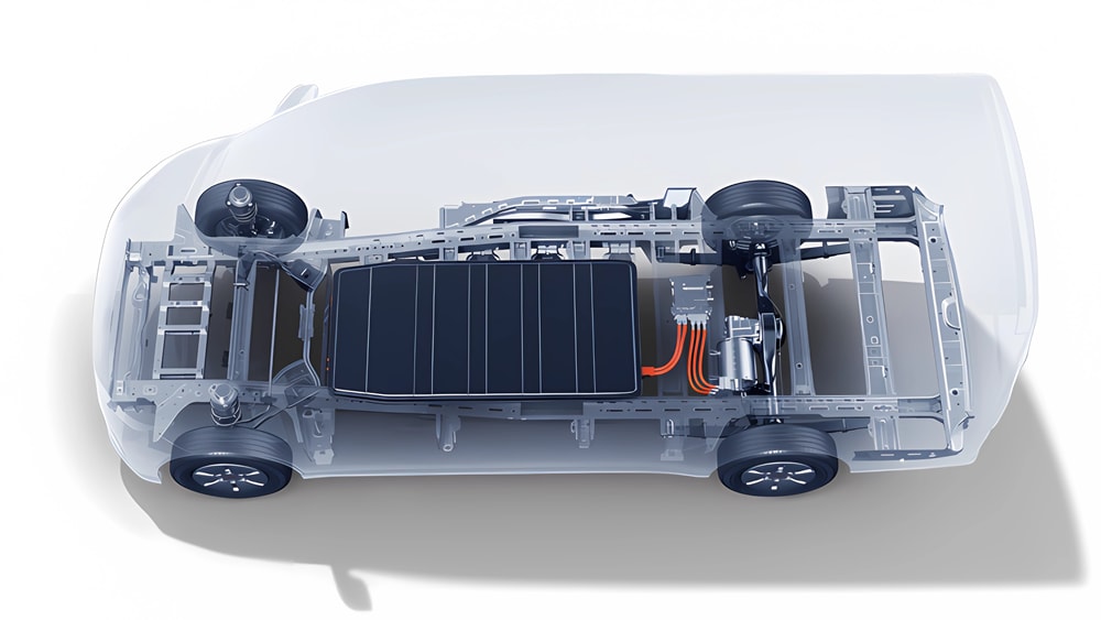 Selain karena ukurannya, Mitra EV berpenggerak roda belakang (RWD). Motor listriknya berada di gardan belakang dan baterai di bagian bawah tengah sasis.