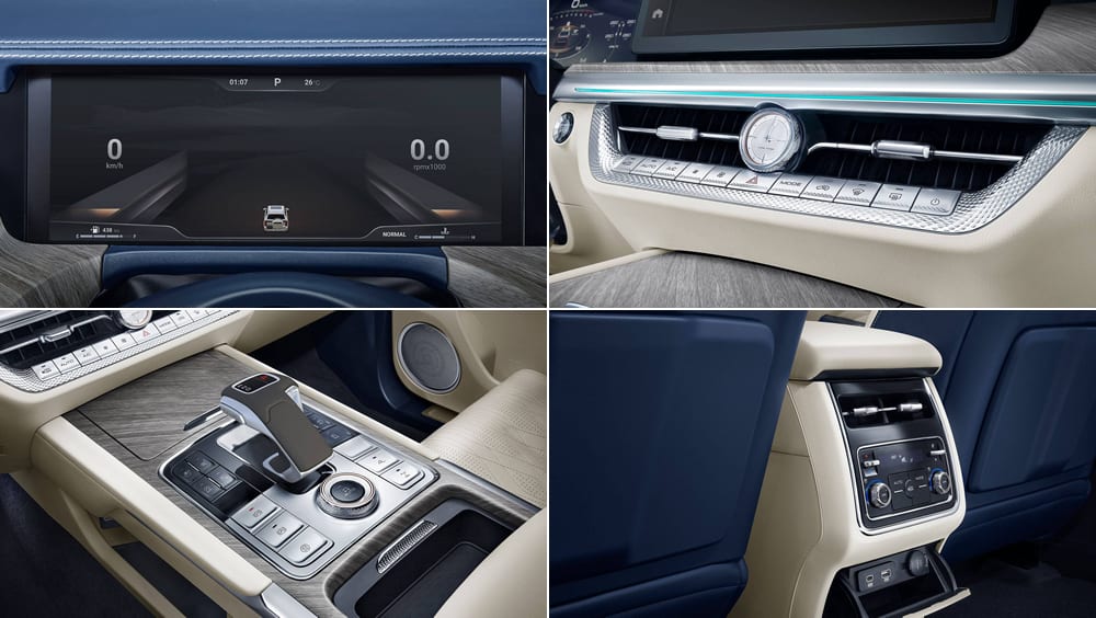 Konfigurasi 7 penumpang, jok Nappa, kursi depan berventilasi dan bisa pijat, panoramic sunroof, layar 14,6 inci, serta sistem audio 12 speaker membuat kabin seperti lounge bergerak.