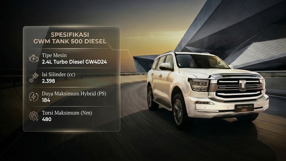 Penantian konsumen Indonesia atas SUV premium ladder-frame bermesin diesel akhirnya terjawab oleh GWM Tank 500 Diesel.[1]