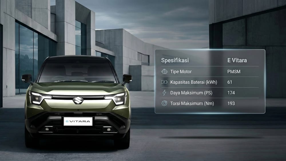 Sebagai SUV listrik modern, Suzuki e Vitara indonesia mengusung konfigurasi teknis yang relevan untuk penggunaan harian.